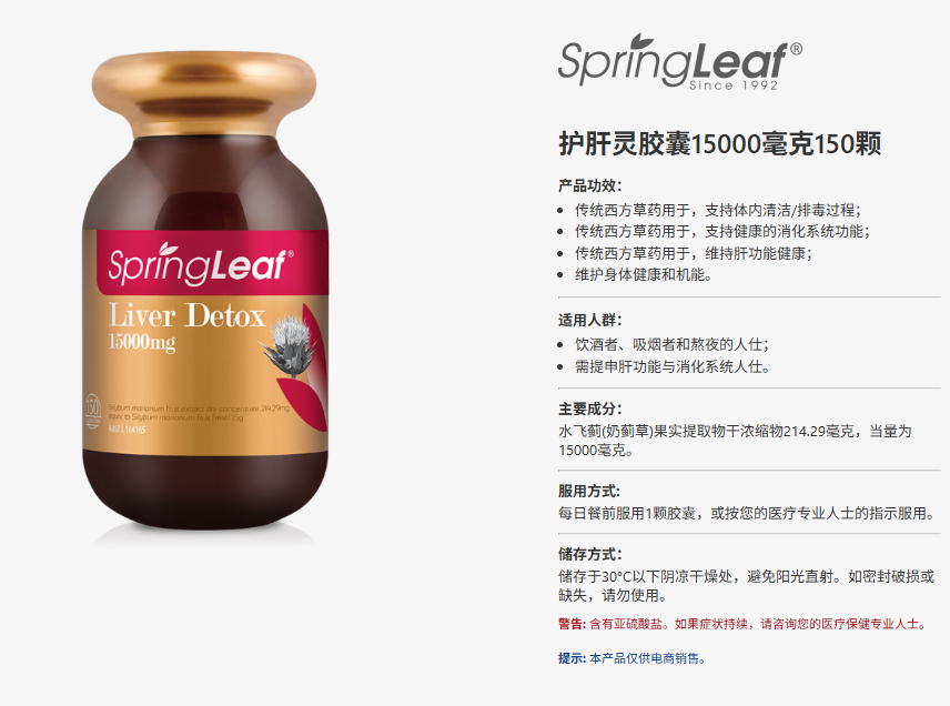 > Spring Leaf 绿芙 奶蓟草护肝片胶囊15000mg 150粒