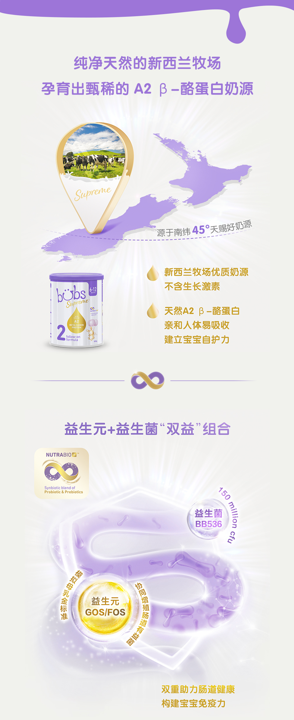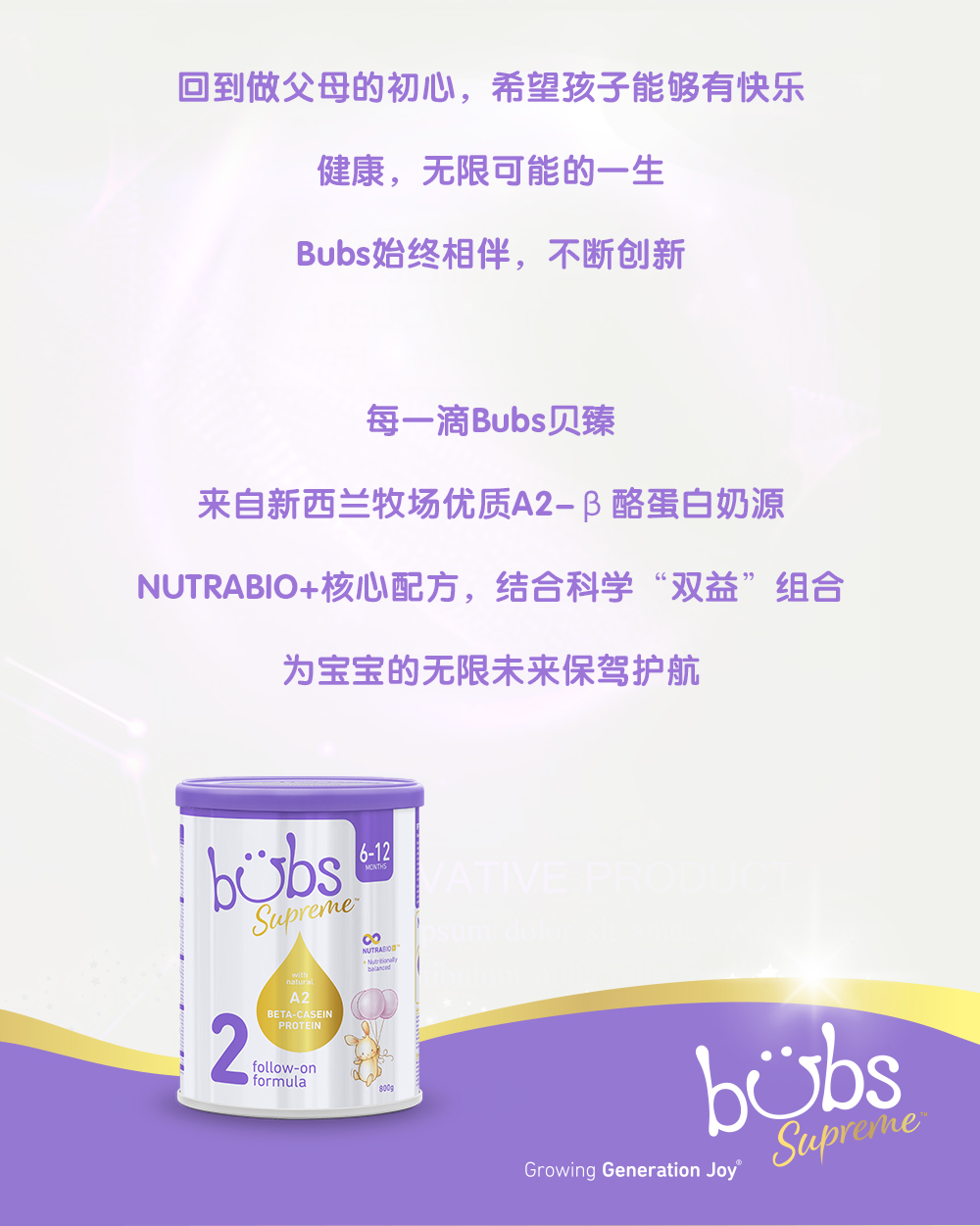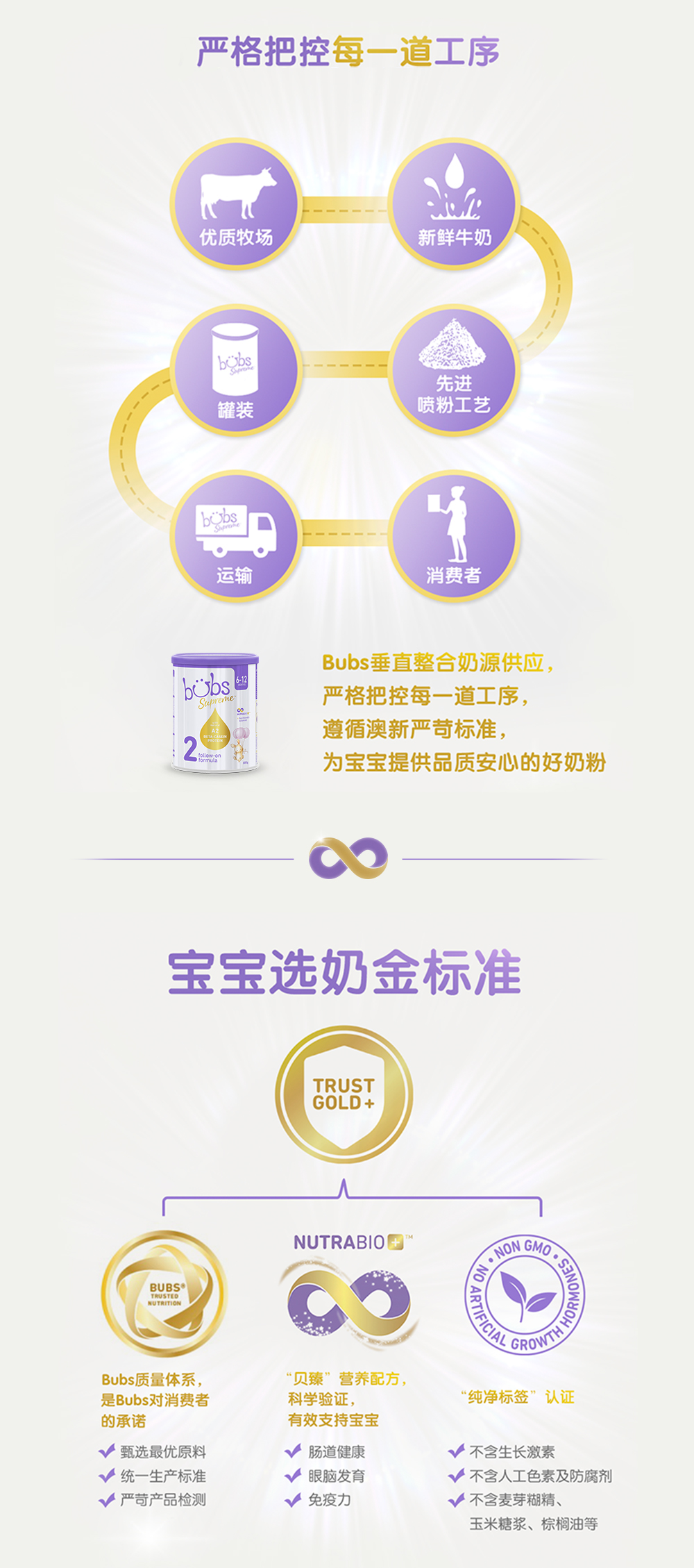 > Bubs 贝臻A2 β-酪蛋白牛奶粉 2段 800g