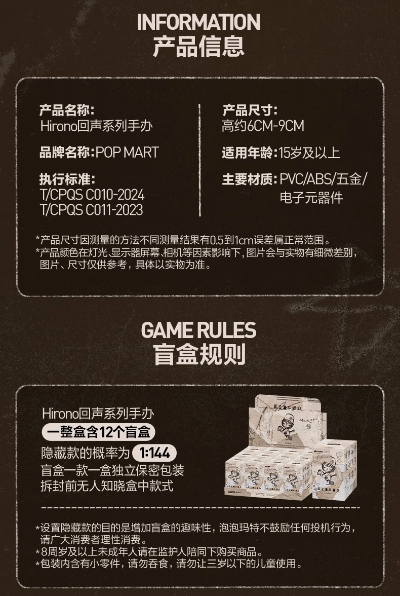 POPMART泡泡玛特 小野Hirono回声系列手办盲盒 随机一个