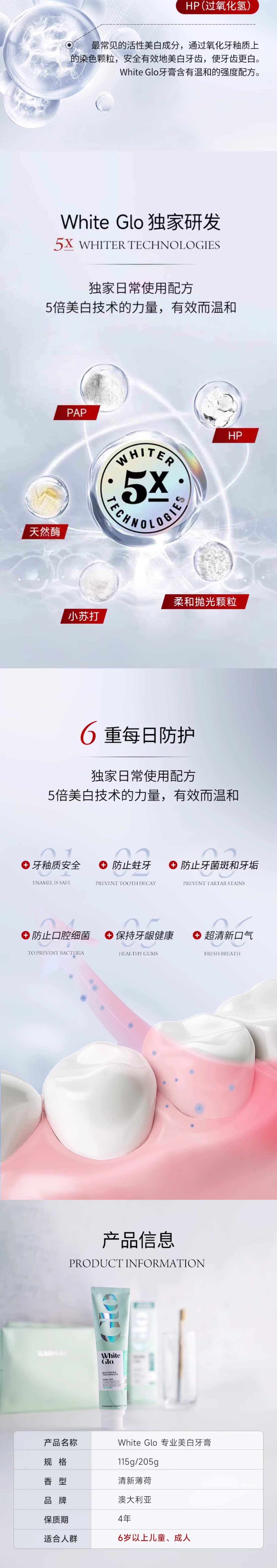 White Glo 专业美白牙膏 205g