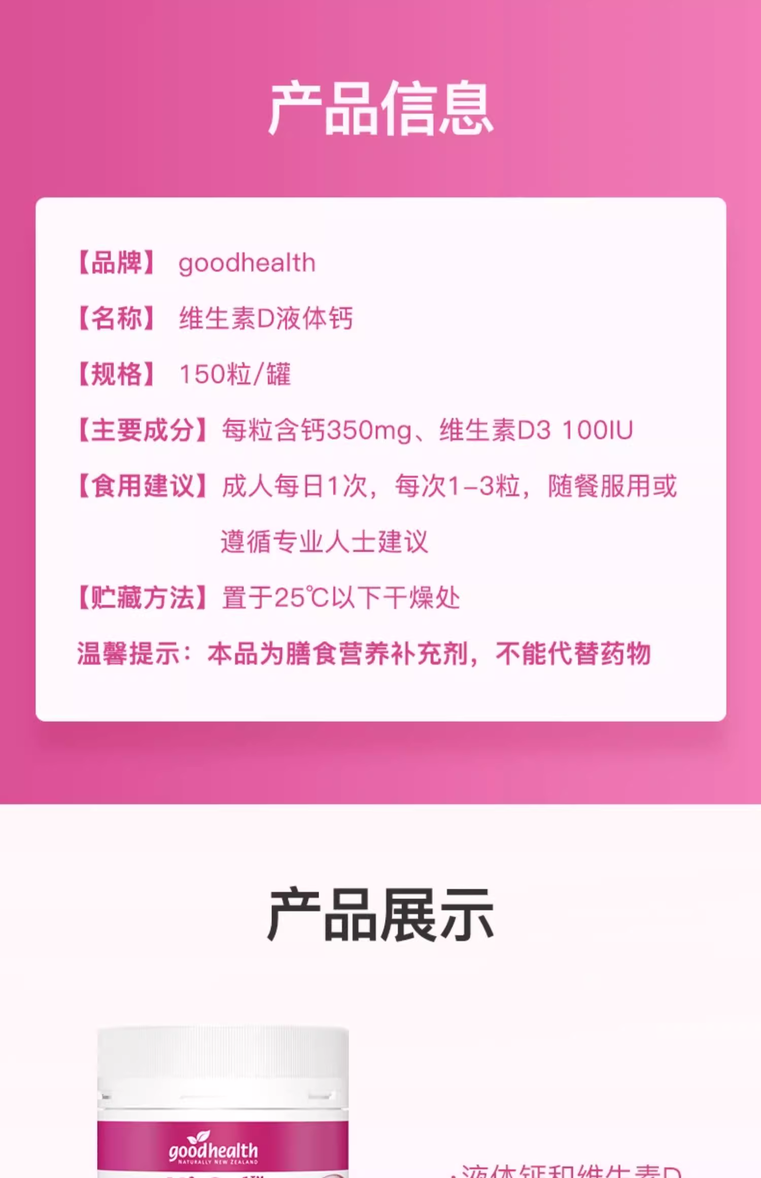 > Goodhealth 维生素D液体钙软胶囊 150粒