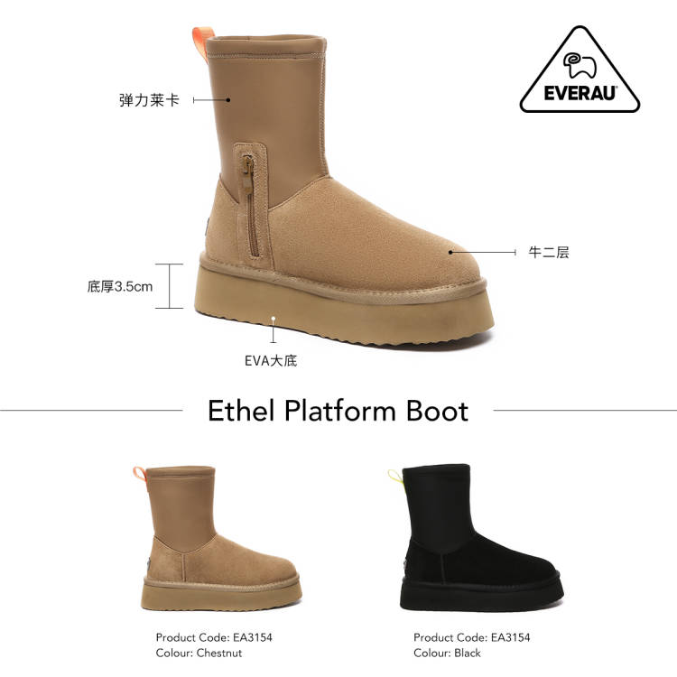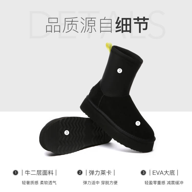 面料莱卡加牛二层,内里羊毛,大底eva 底厚3.5cm