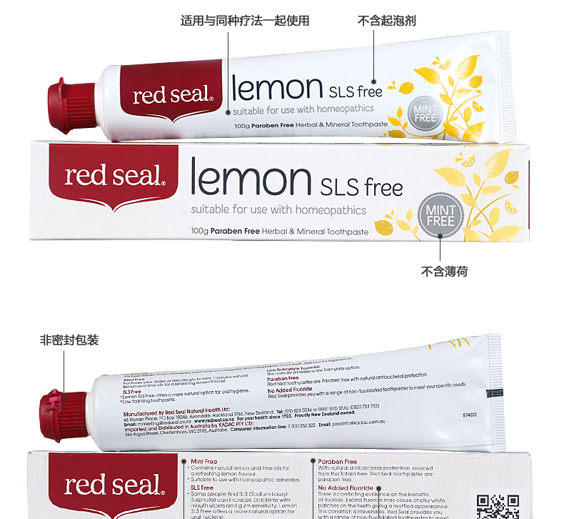 > Red seal 红印柠檬牙膏100g