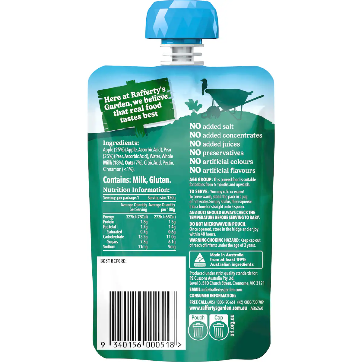 Rafferty's Garden 苹果&梨&肉桂粥泥 6月+ 120g