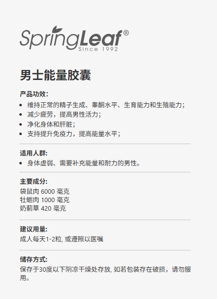 > Spring Leaf 绿芙 男士能量胶囊 90粒 男士活力片