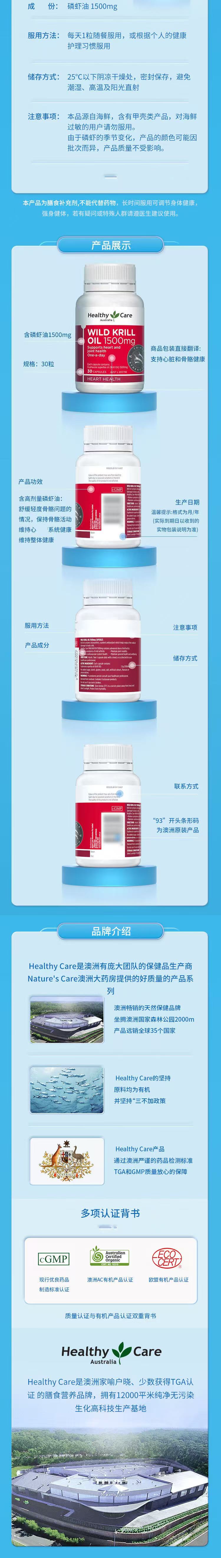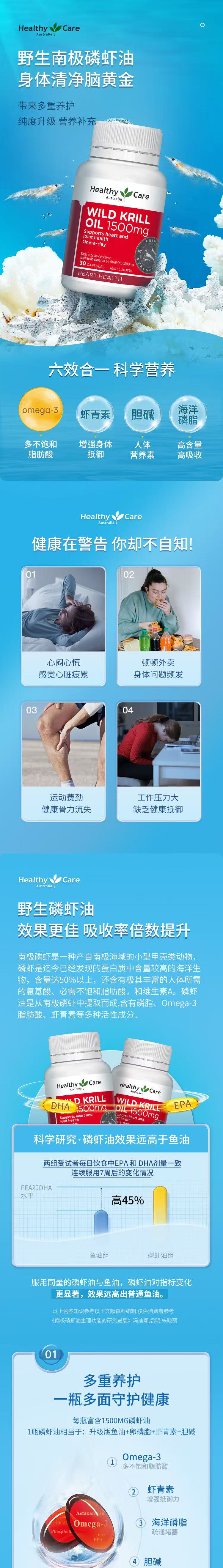> Healthy Care 野生深海磷虾油胶囊 1500mg 30粒