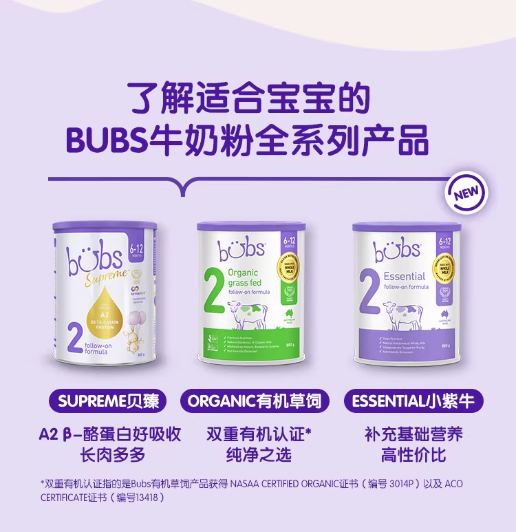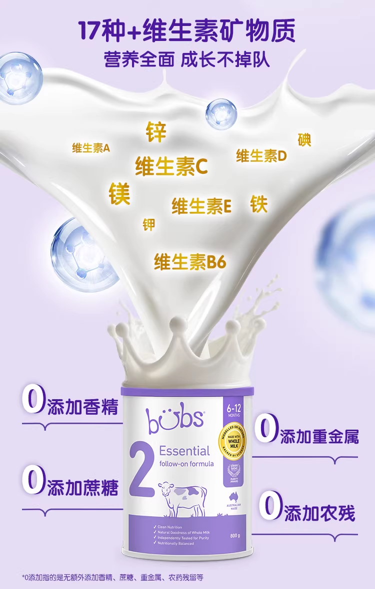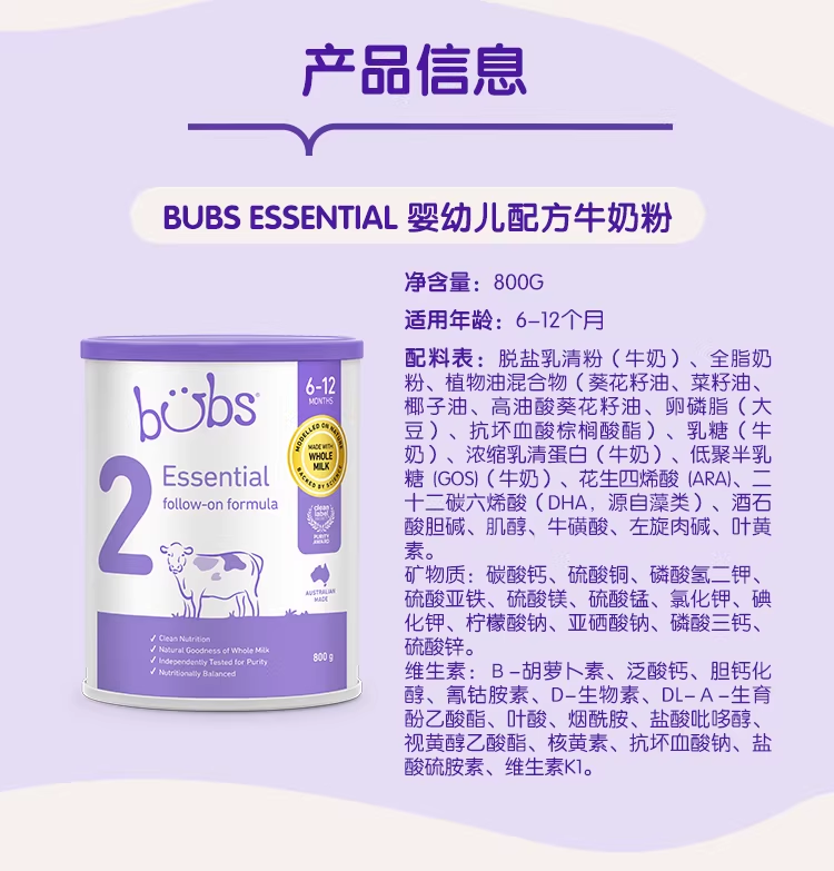 > Bubs Essential 婴幼儿配方牛奶粉 2段 800g