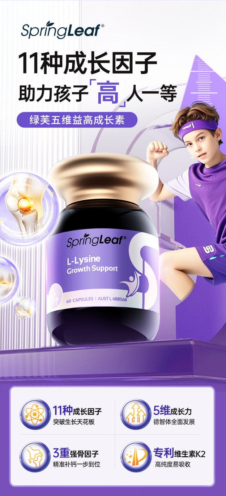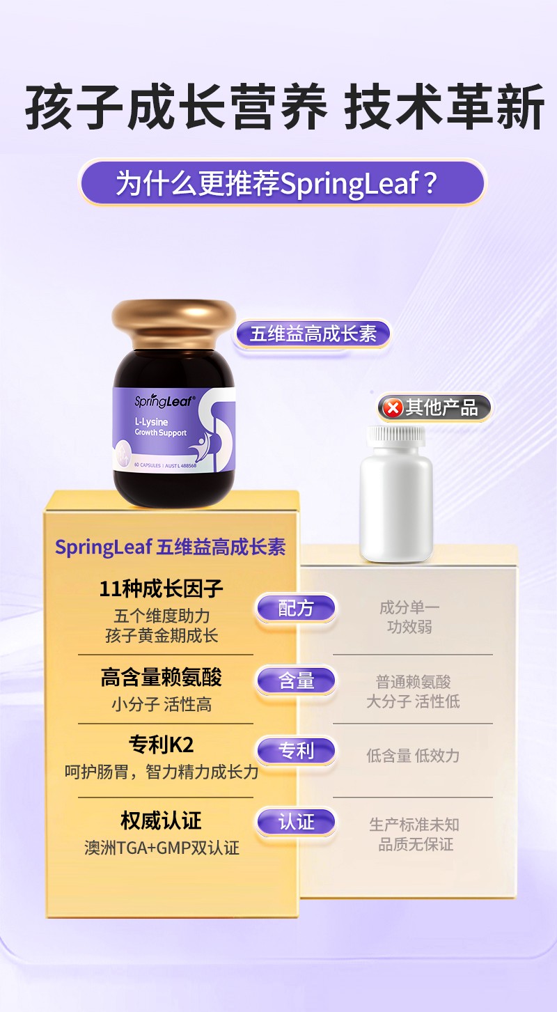 > SpringLeaf 绿芙五维益高成长素胶囊 60粒
