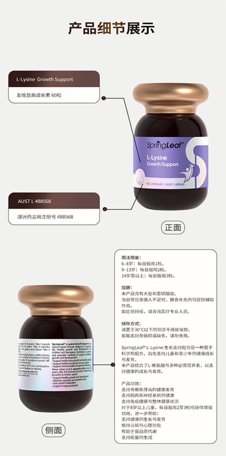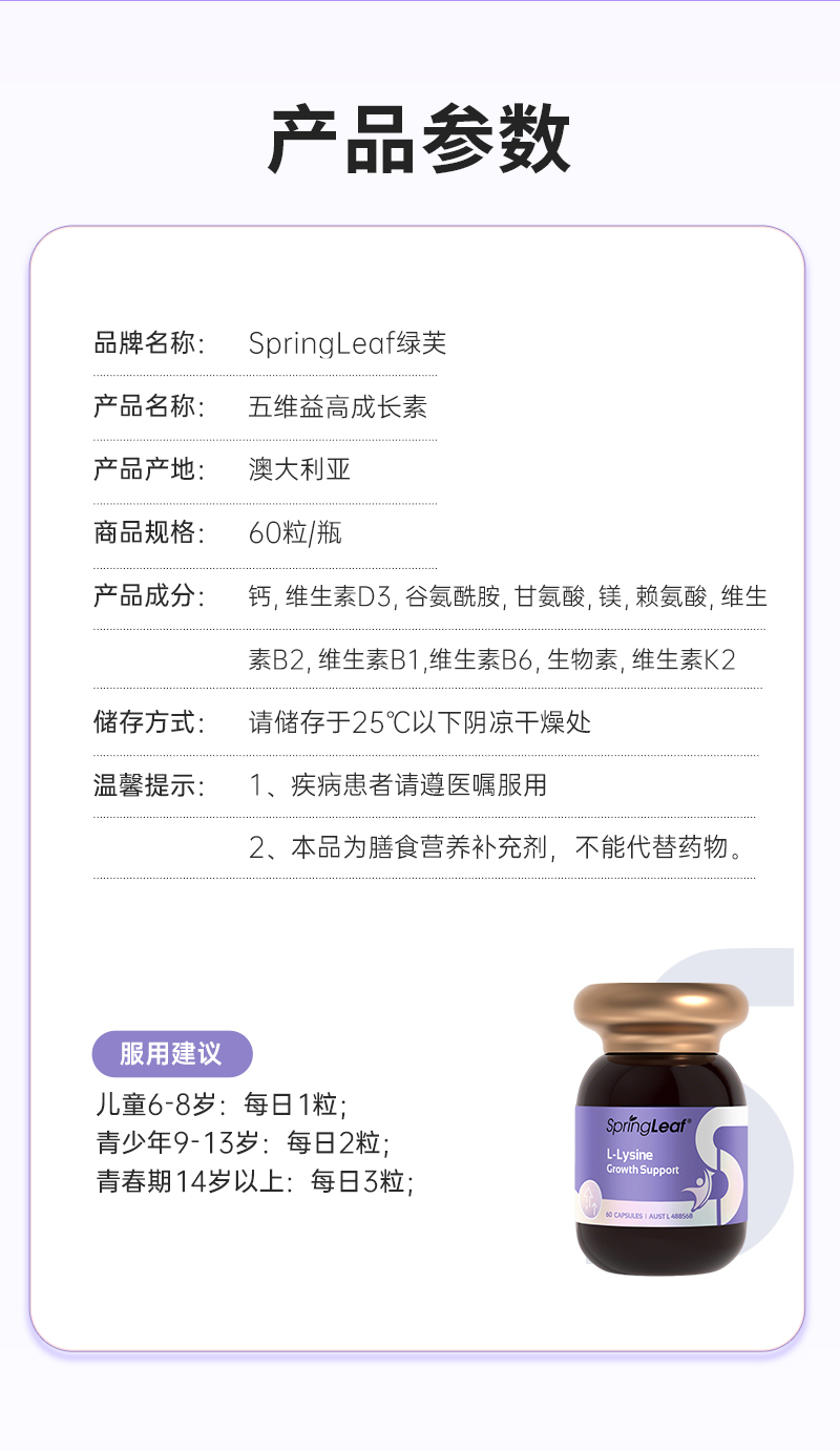 SpringLeaf 绿芙五维益高成长素胶囊 60粒