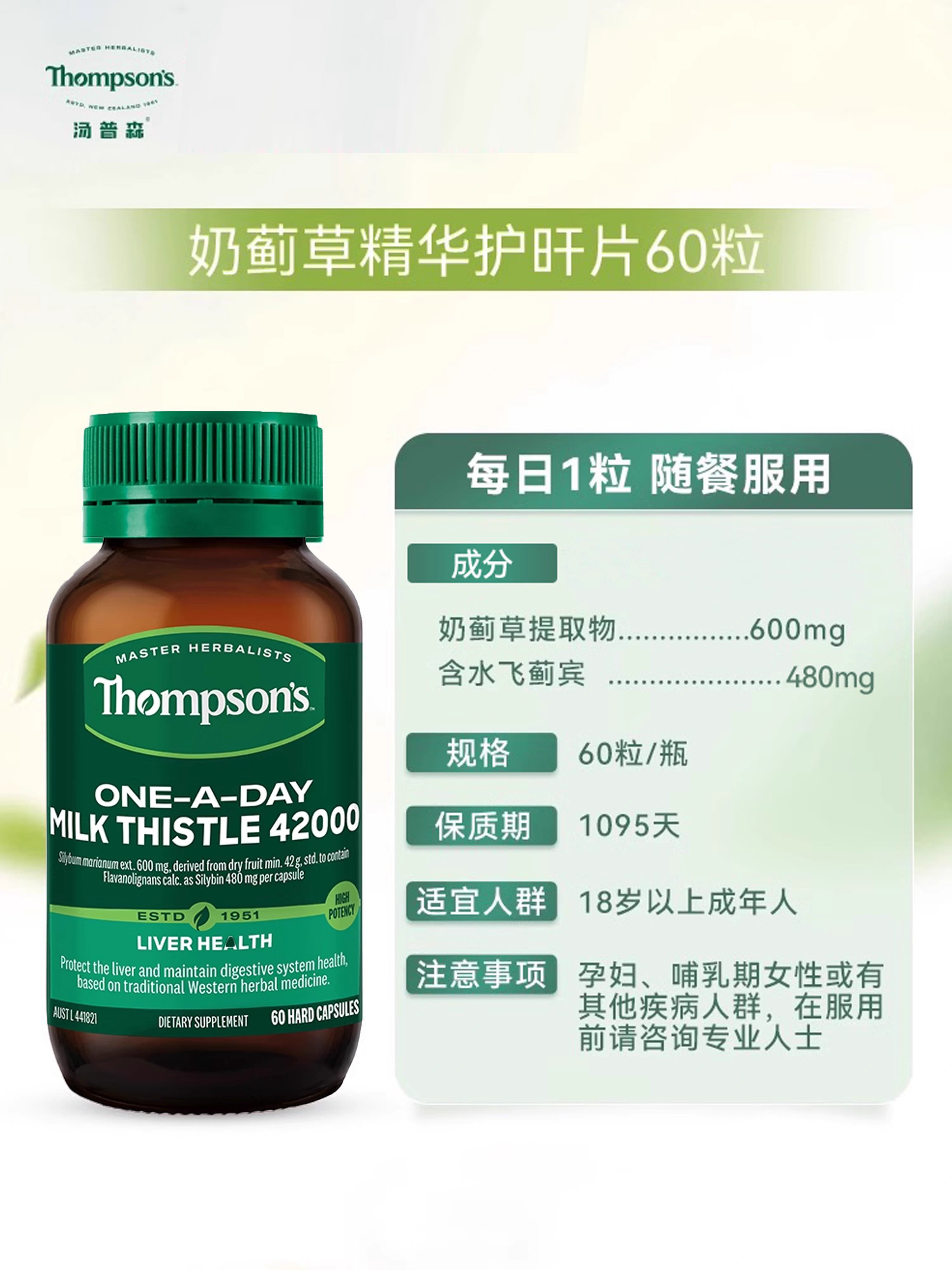Thompson's 汤普森 奶蓟草护肝胶囊 42000mg 60粒