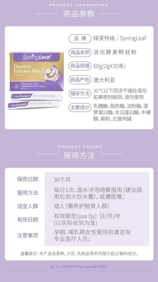 Spring Leaf 绿芙 消化酵素畅轻粉草莓味 2g*30