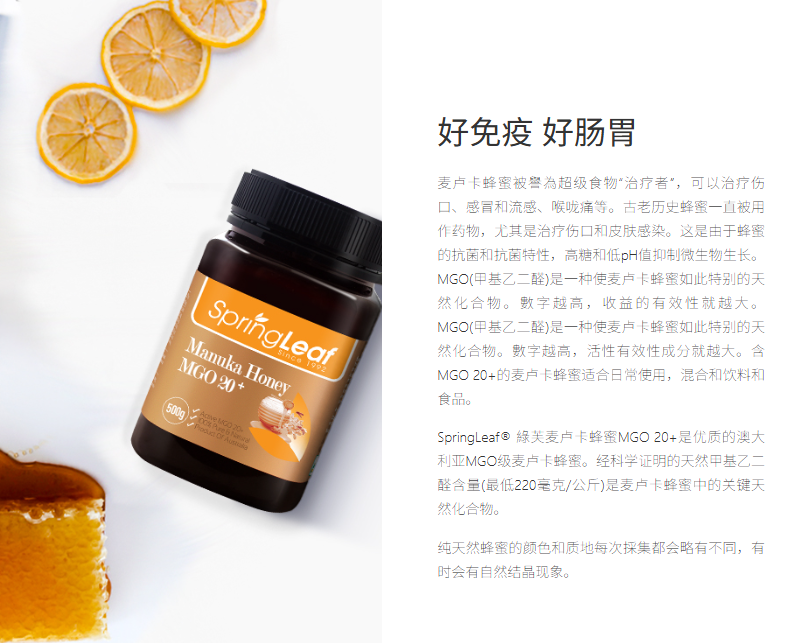 Spring Leaf 绿芙 麦卢卡蜂蜜MGO20+ 500g