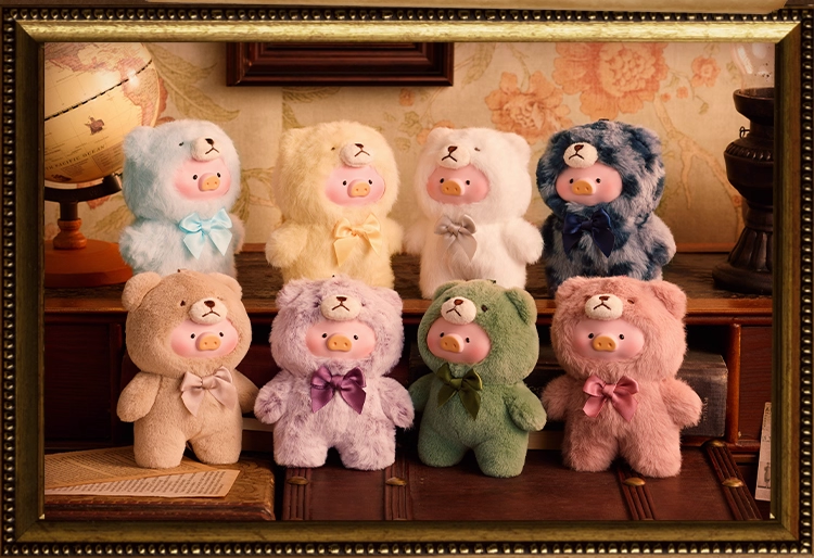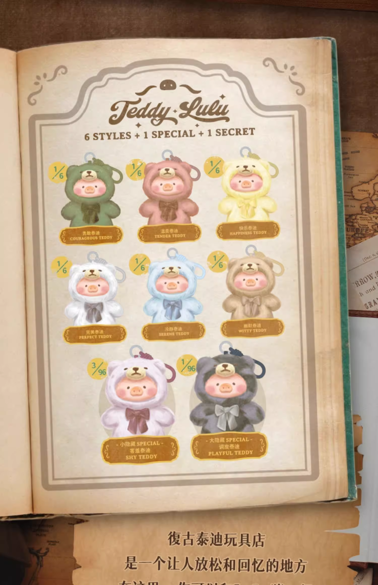 罐头猪Lulu- 复古泰迪玩具店搪胶绒毛挂件盲盒 随机一个