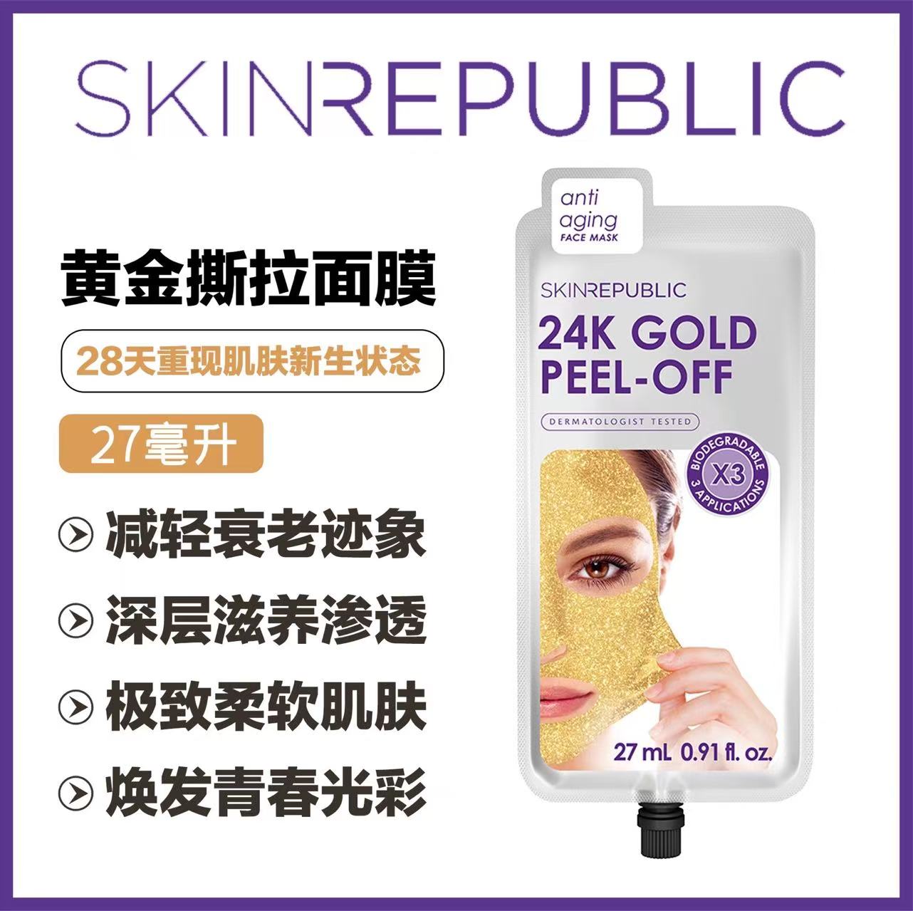 > Skin Republic 24K黄金抗衰老液体撕拉面膜 27ml