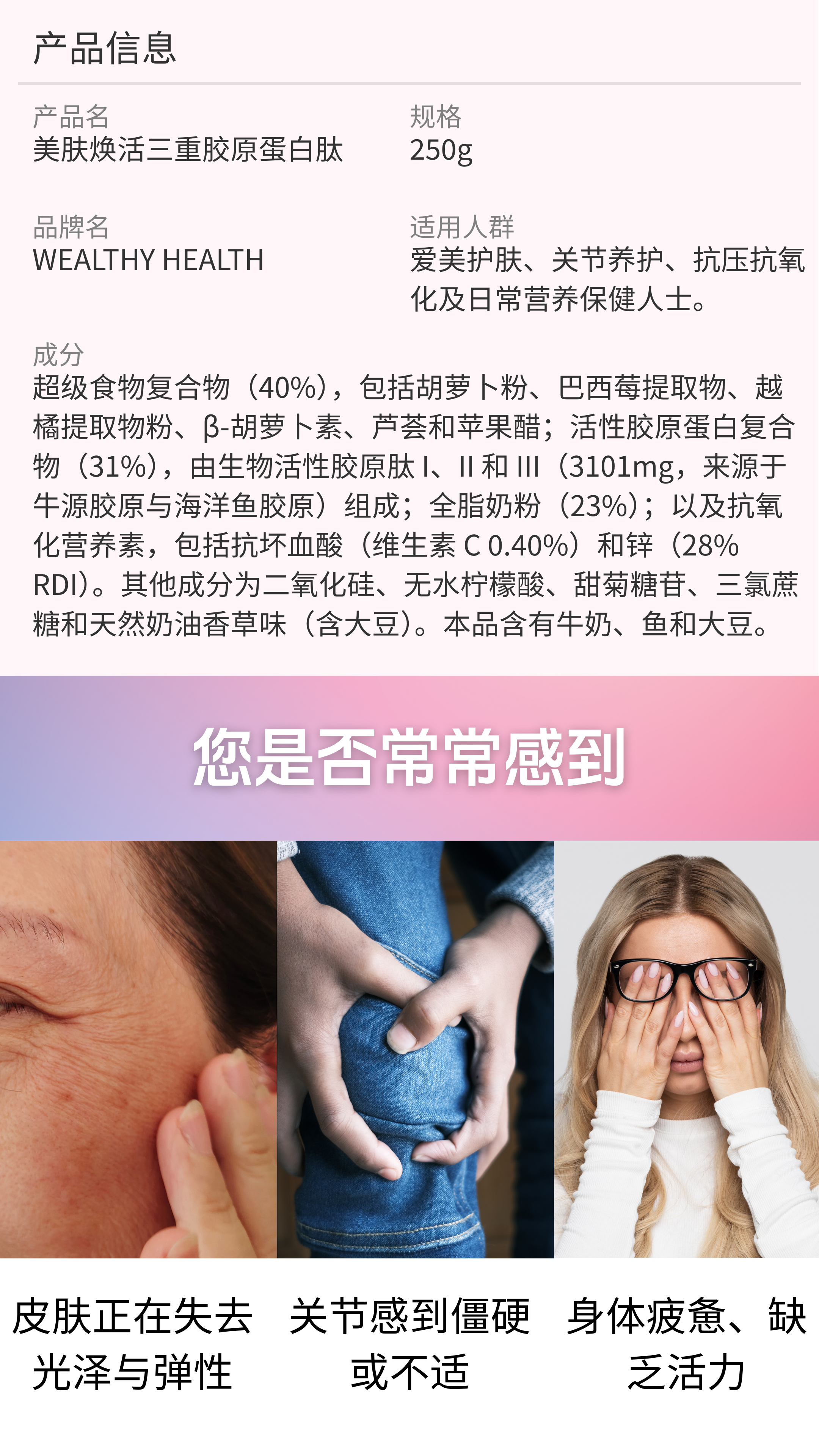 > Wealthy Health 富康 美肤焕活三重胶原蛋白肽 250g