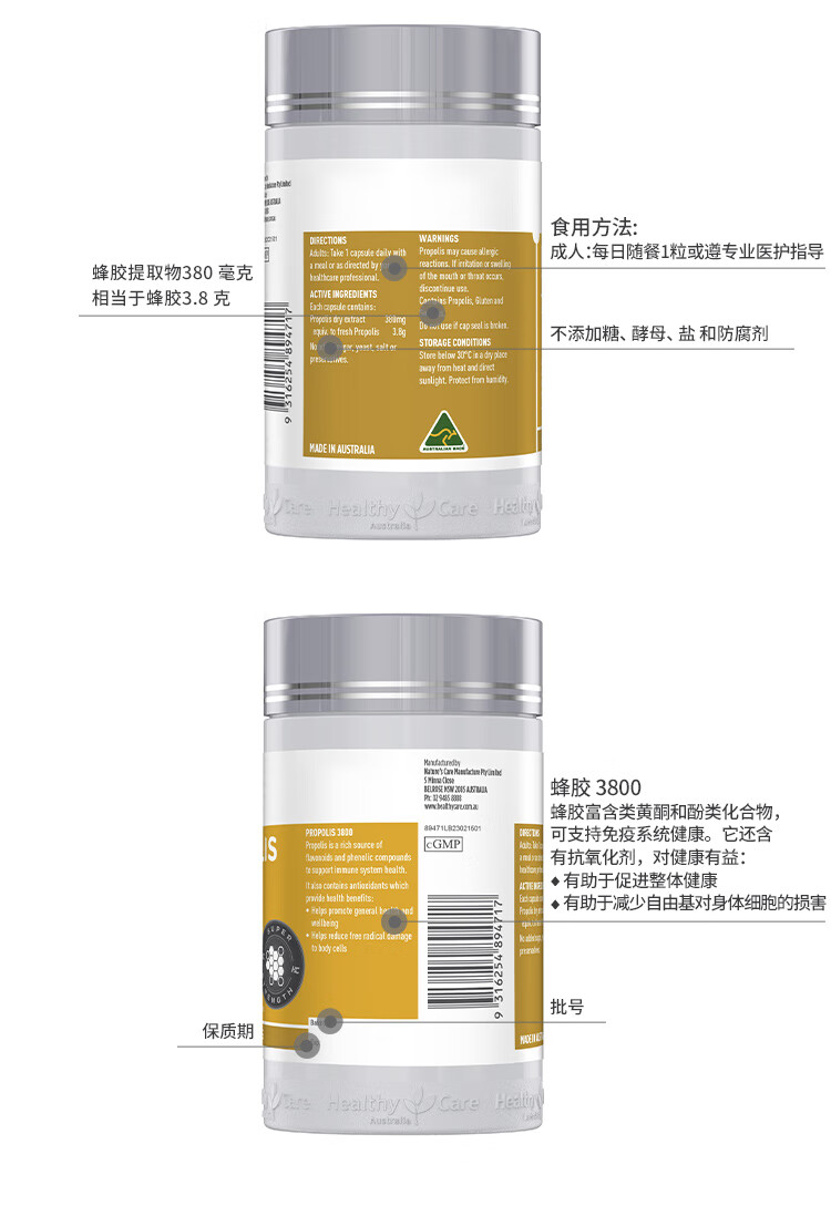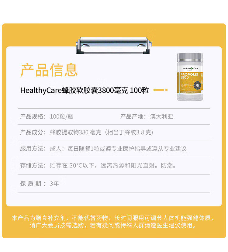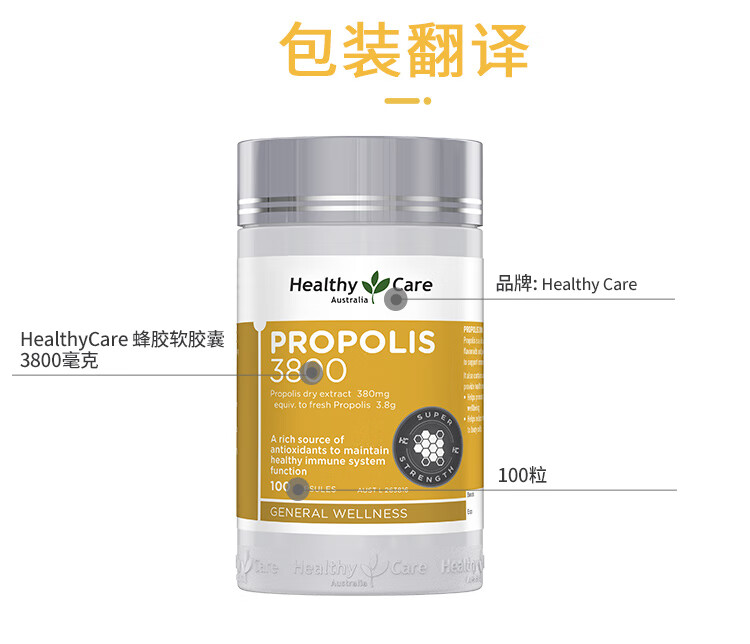 > Healthy Care 蜂胶 3800mg 100粒