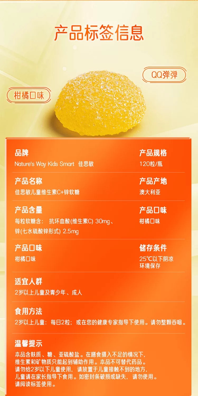 > NATURE'S WAY 儿童维生素C+锌软糖 120粒
