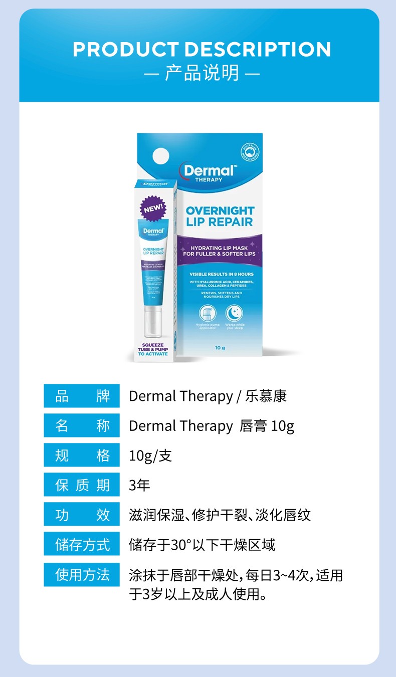 > Dermal 夜间修护唇膏10g