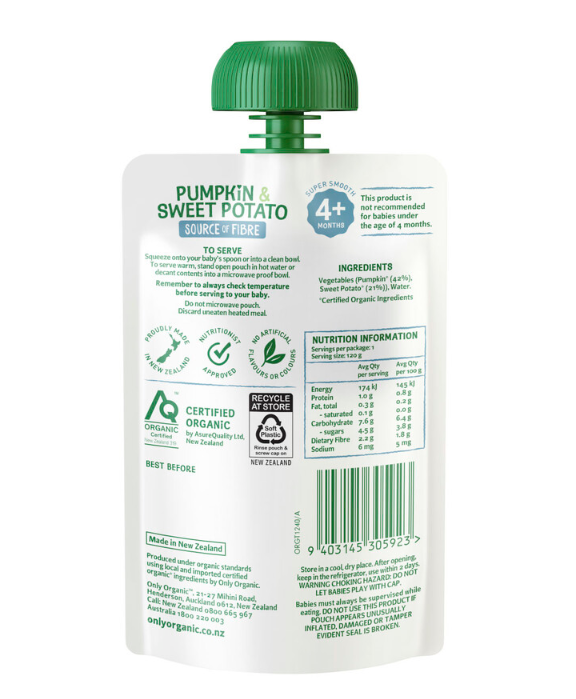 Only Organic 4月+ 南瓜+红薯辅食泥 120g