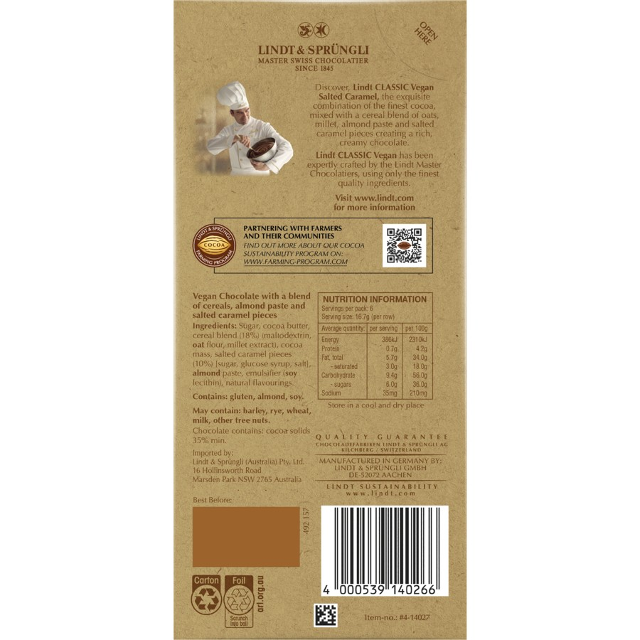 Lindt 瑞士莲 素食咸焦糖巧克力 100g