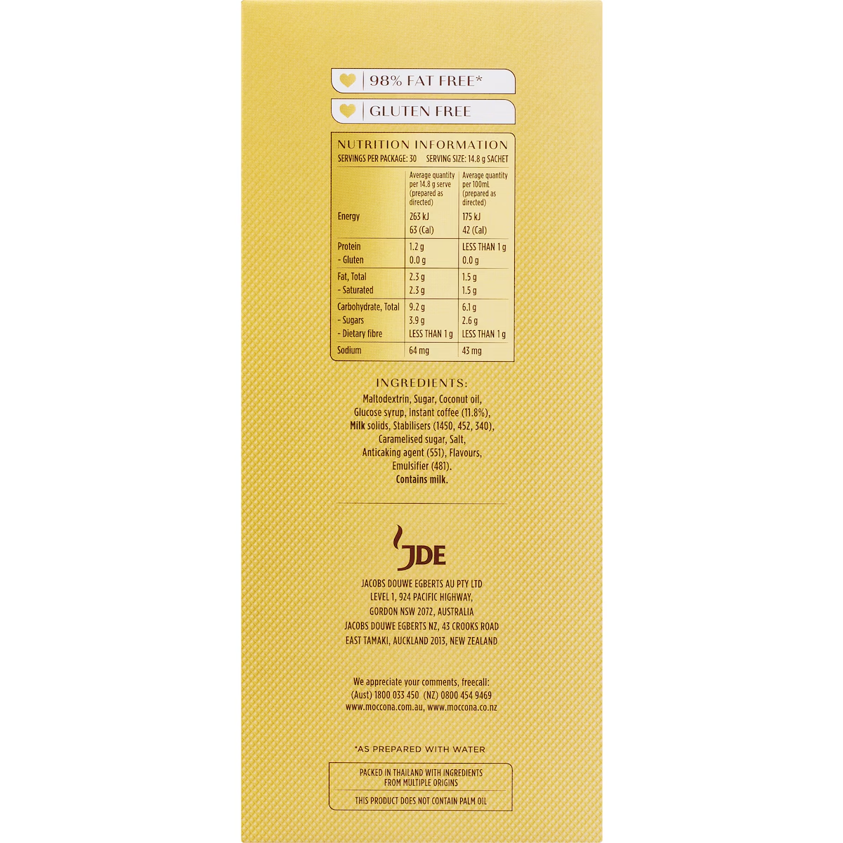 > Moccona 拿铁咖啡 30 条/盒