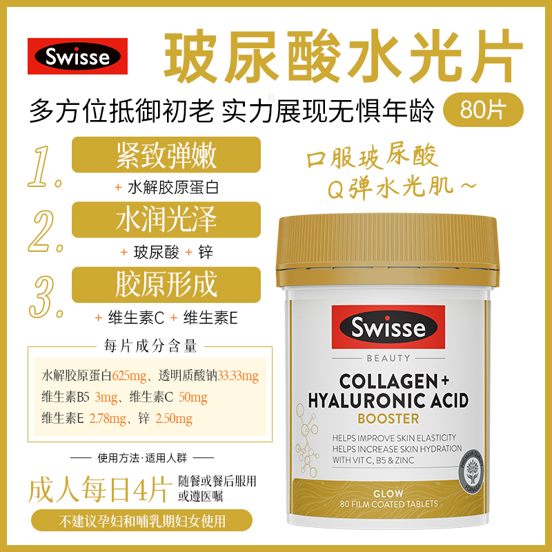 > Swisse 金装胶原蛋白+玻尿酸片 80粒
