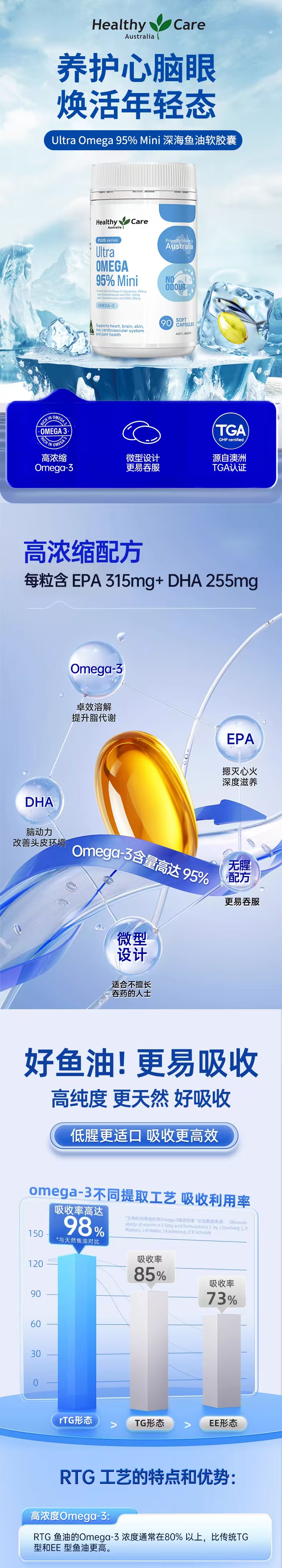 Healthy Care Plus 95%高纯Omega-3迷你鱼油 90粒