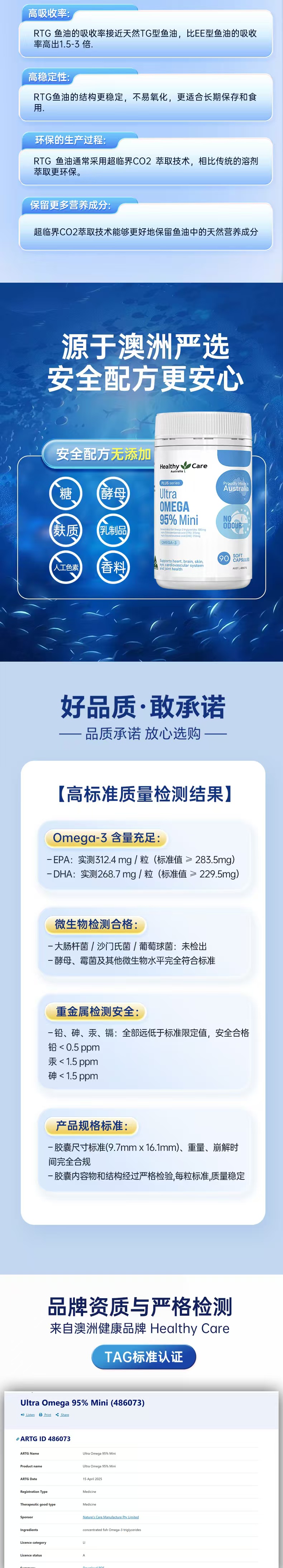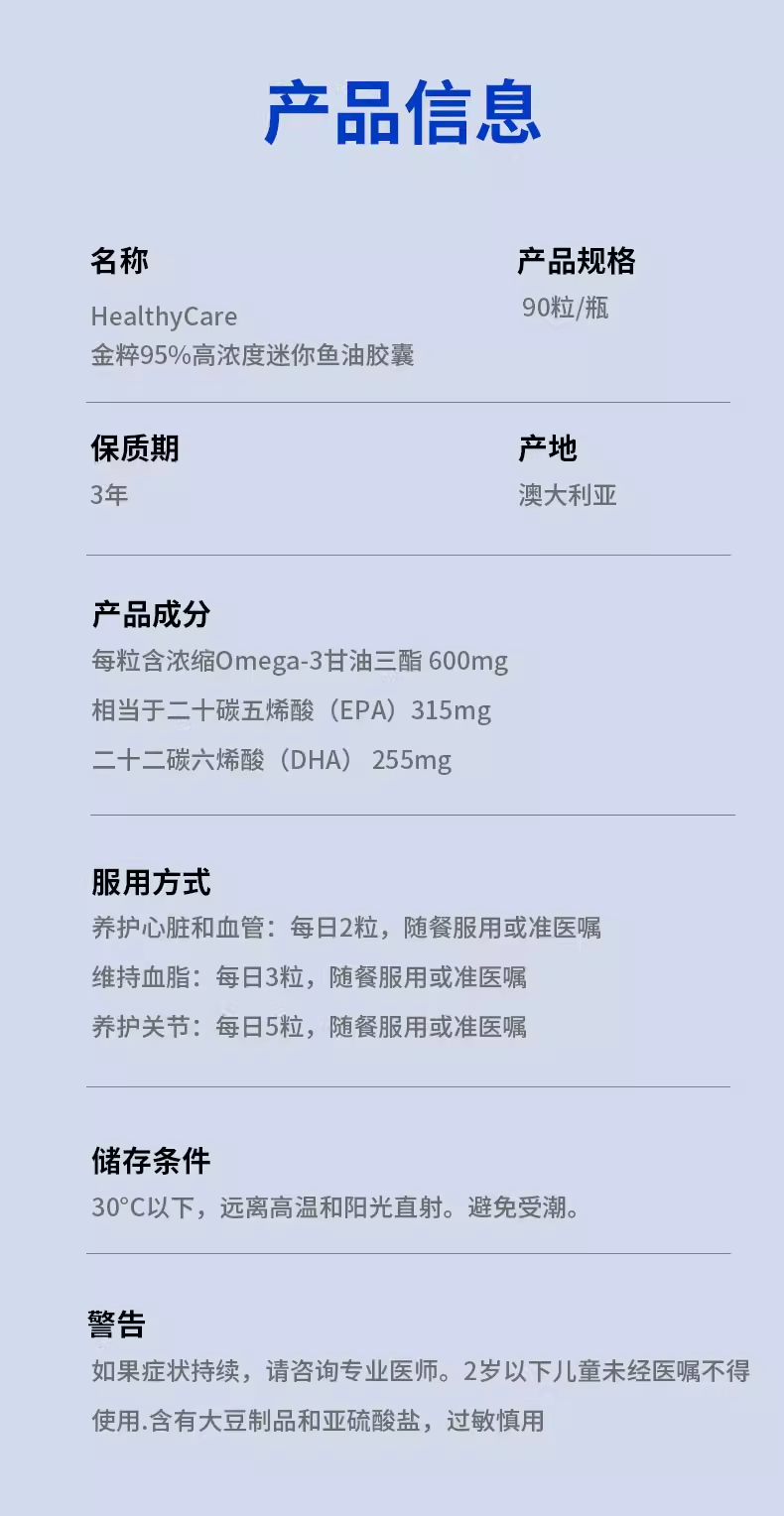 > Healthy Care Plus 95%高纯Omega-3迷你鱼油 90粒