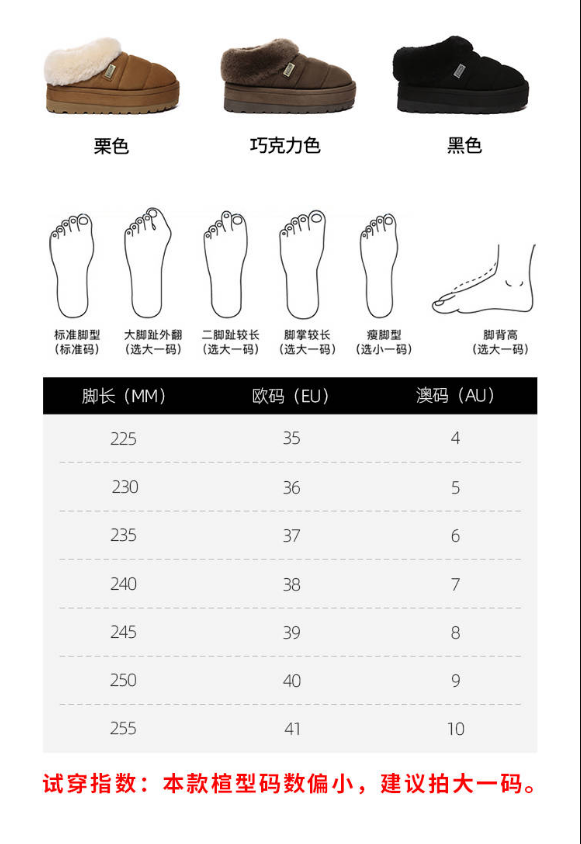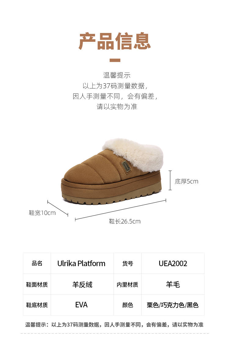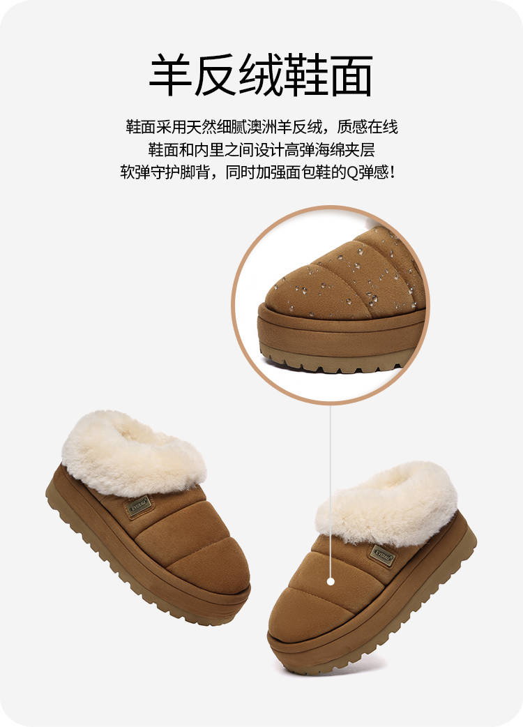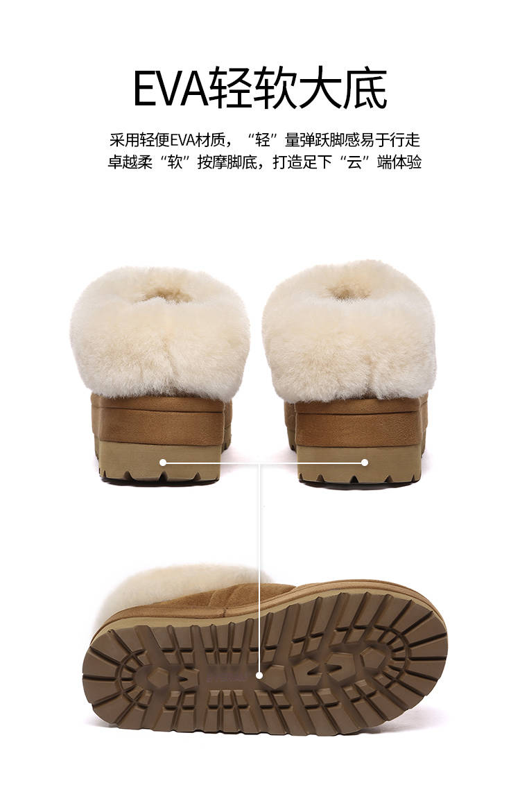 鞋面:羊皮 内里:羊毛 大底:EVA 底厚5cm 尺码偏小选大一码