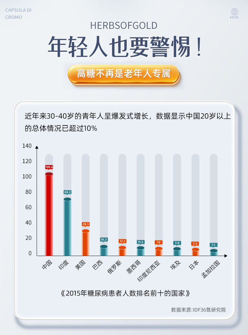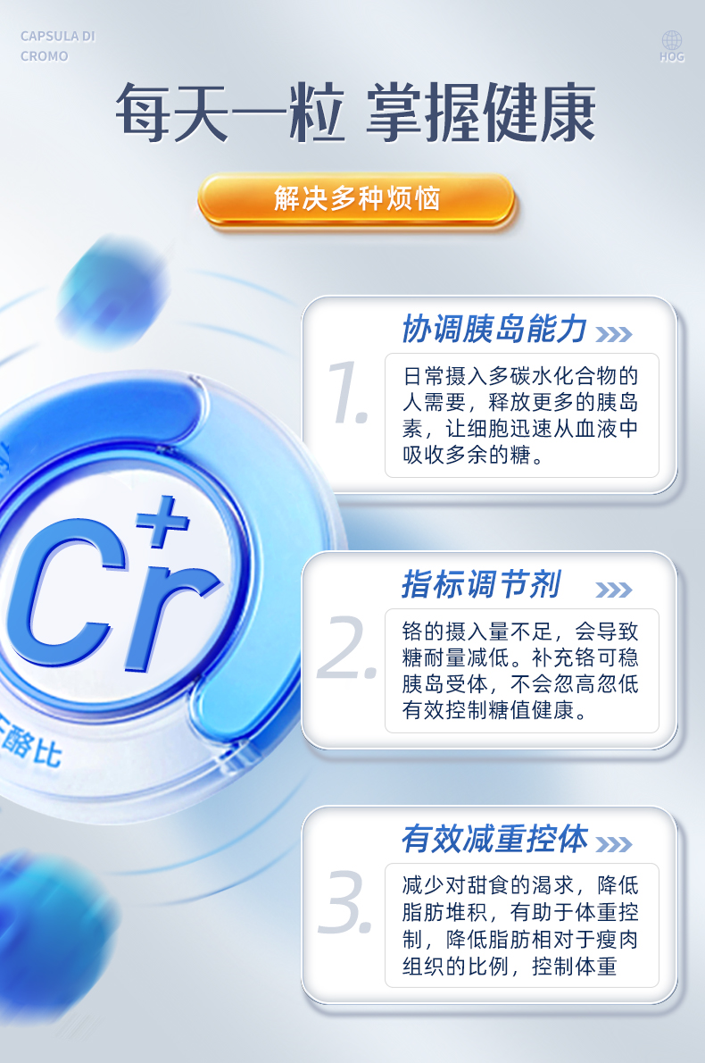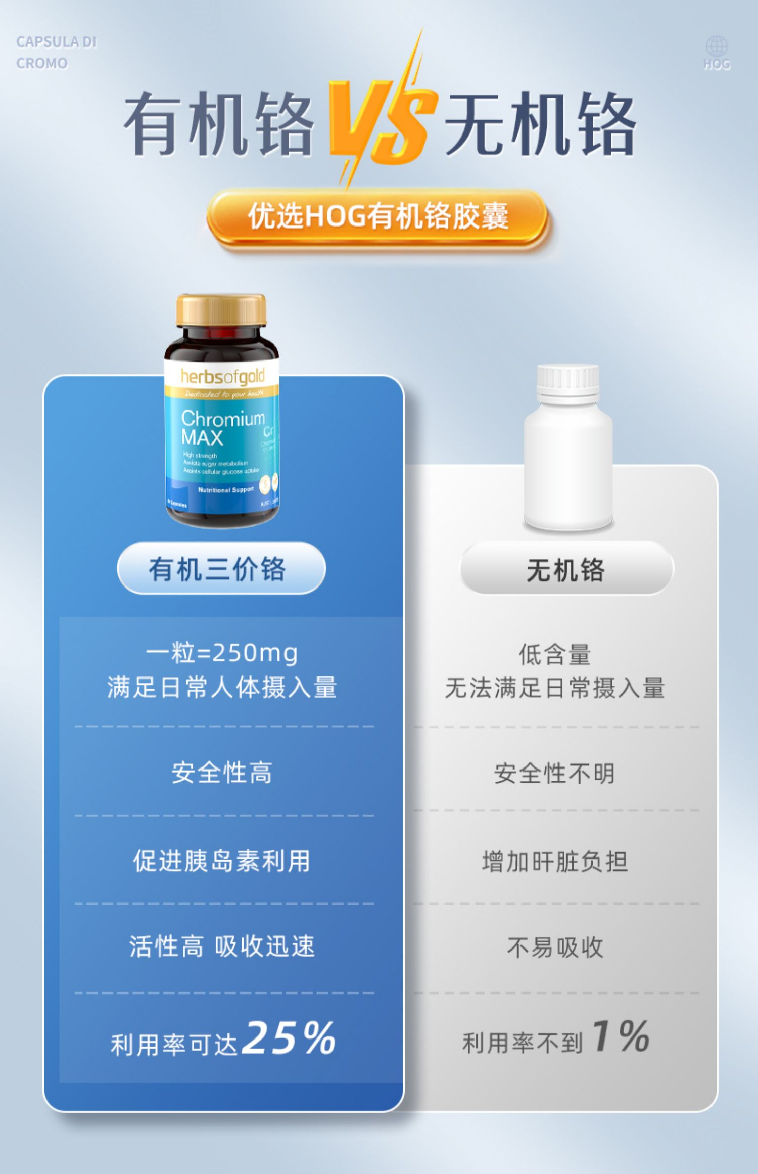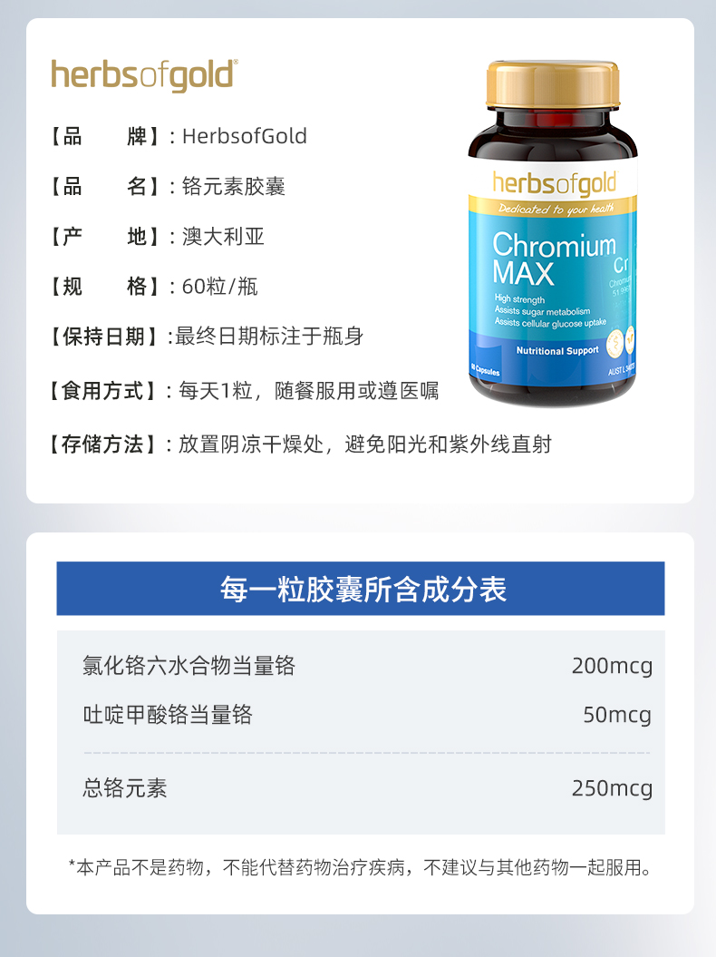 > Herbs of Gold 和丽康 铬元素胶囊60粒 促进胰岛素利用 平衡控糖