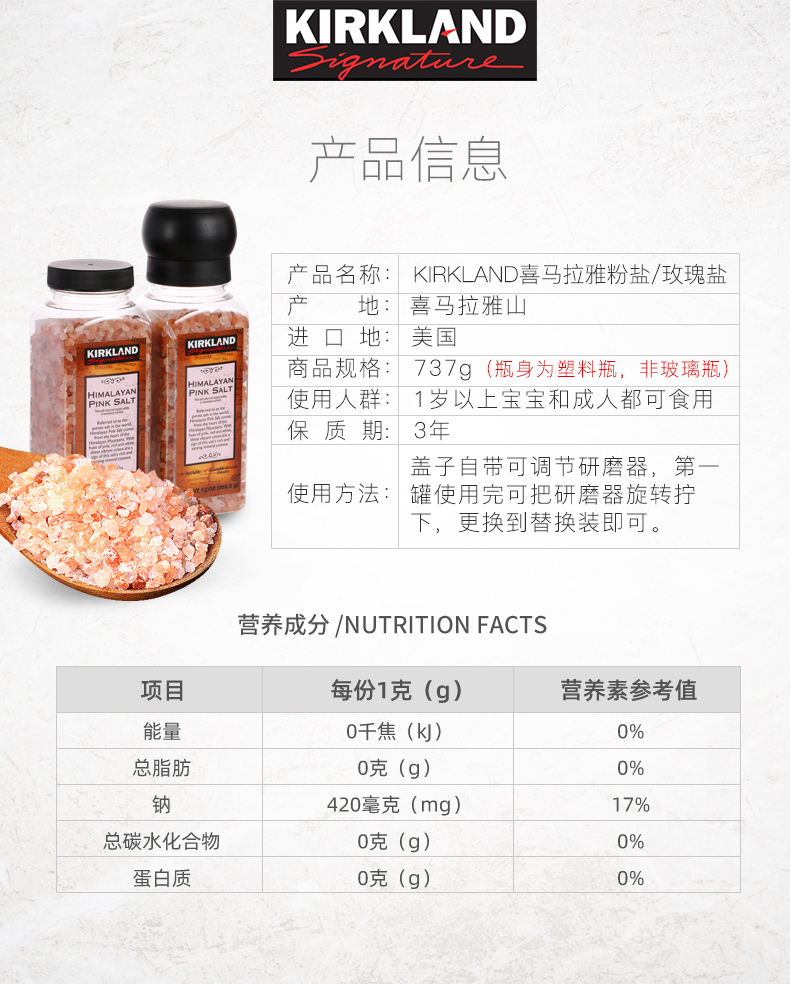 > Kirkland 喜马拉雅粉盐 737克