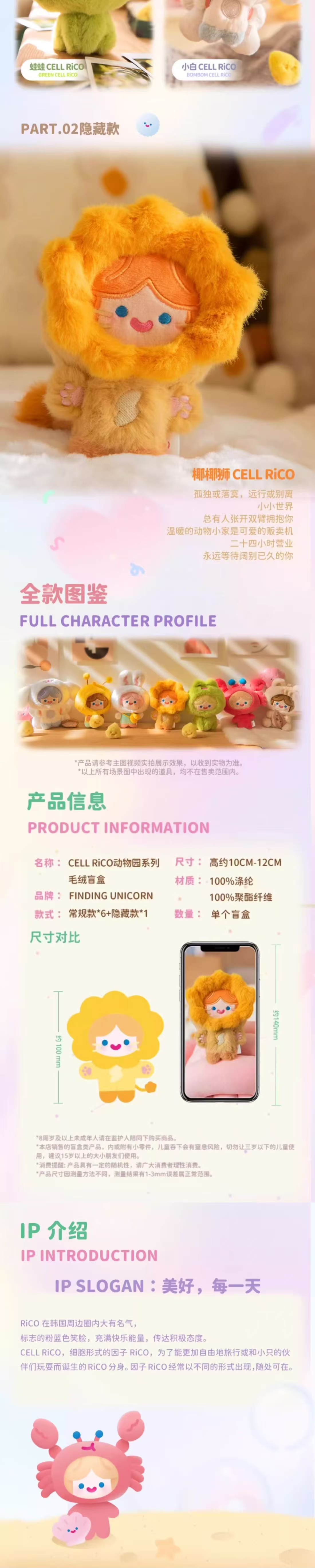 > Finding Unicorn CELL RiCO动物乐园系列毛绒盲盒 随机一个