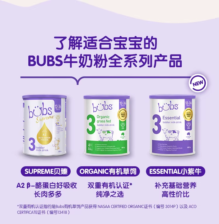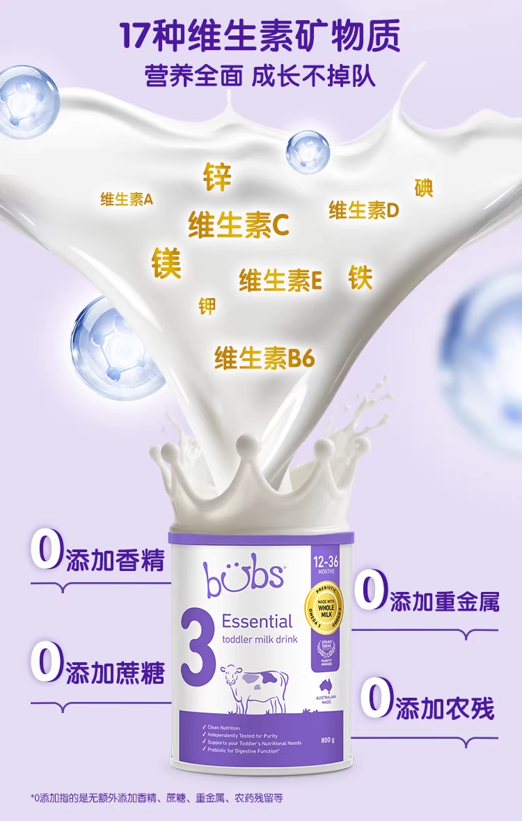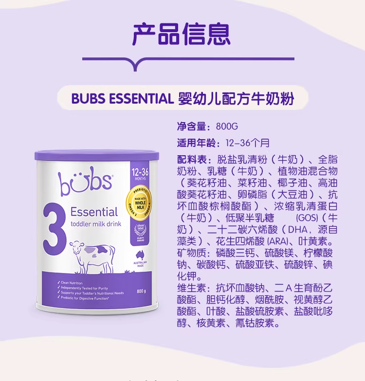 > Bubs Essential 婴幼儿配方牛奶粉 3段 800g