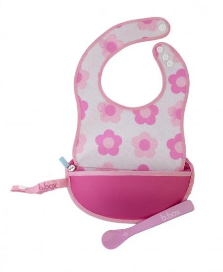 B.box 婴幼儿便携带勺防水围兜 立体吃饭兜 4月+ 粉色小花