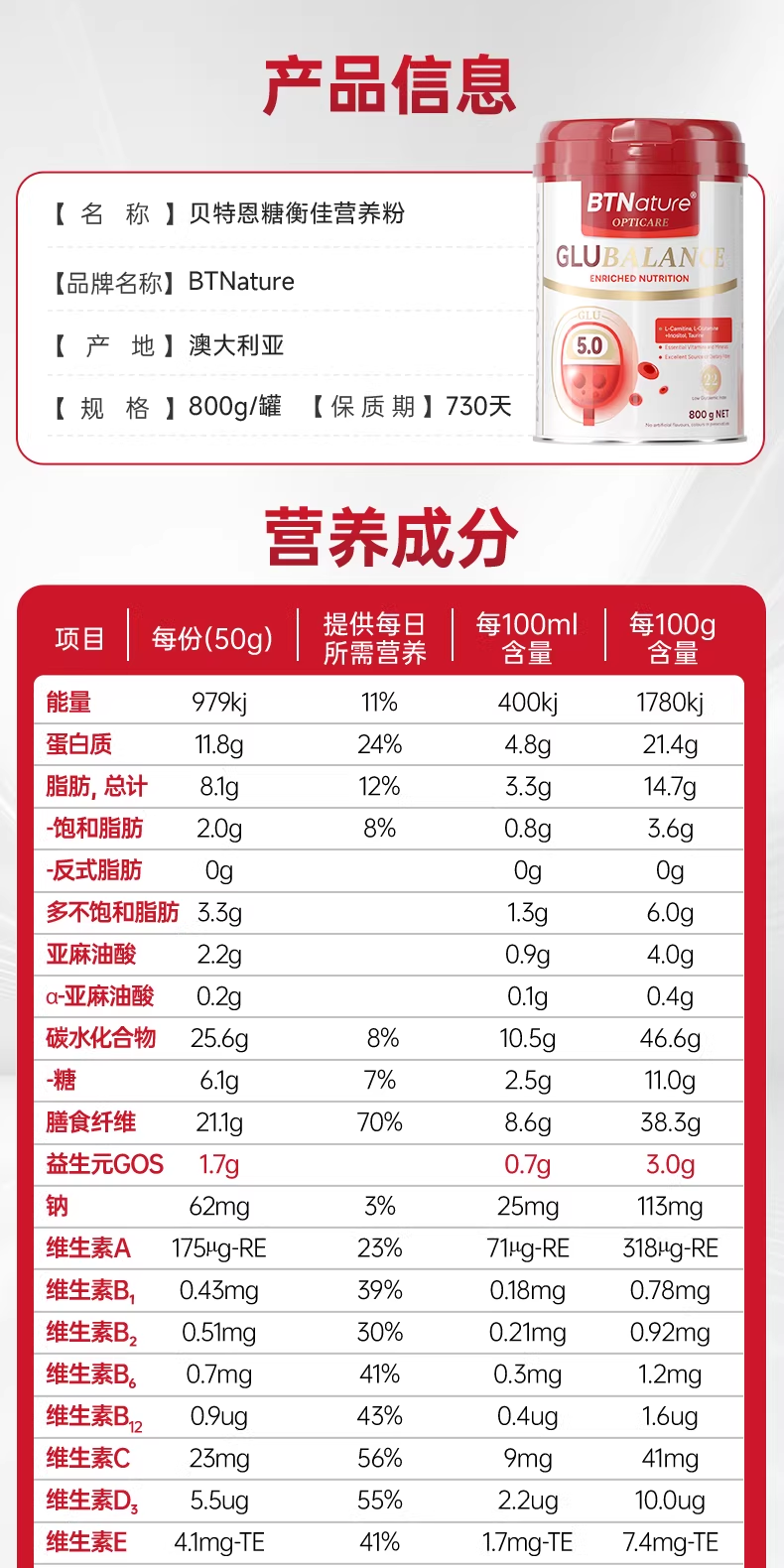> BTNature 贝特恩 血糖平衡营养粉 800g