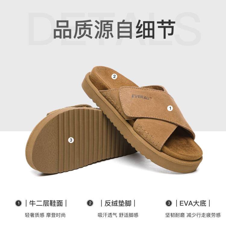 EVERAU 东方禅意软皮交叉拖鞋 EA2042