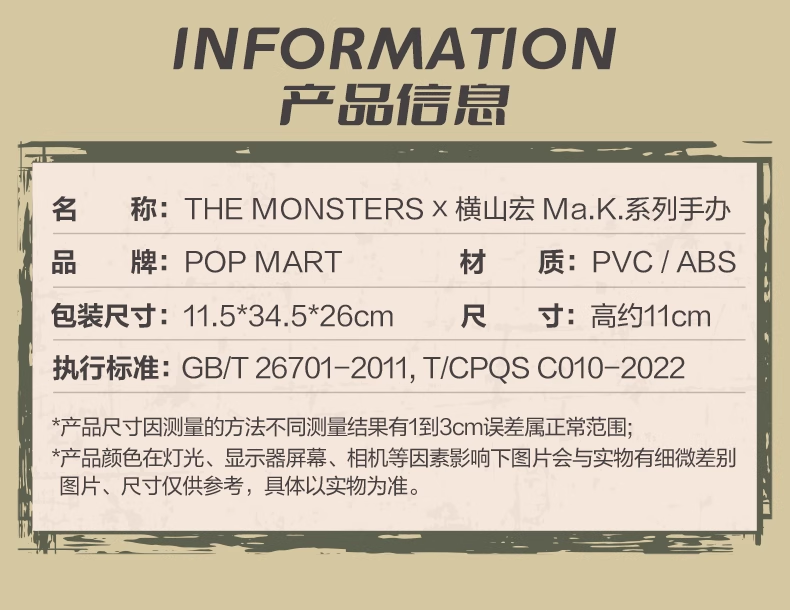 POPMART泡泡玛特 Labubu 拉布布THE MONSTERS x横山宏Ma.k.系列手办盲盒 随机一个