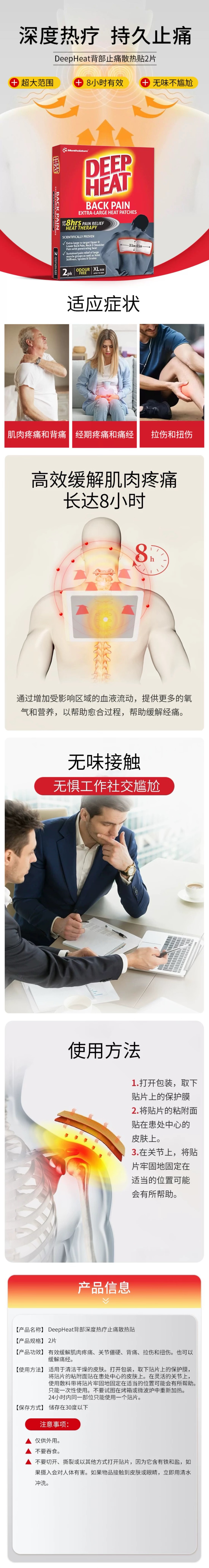> Deep Heat 8小时背部止痛热帖XL 2片