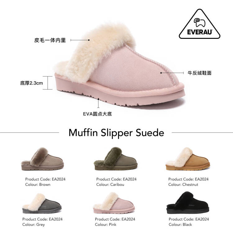 > EVERAU 麂皮松饼拖鞋 EA2024