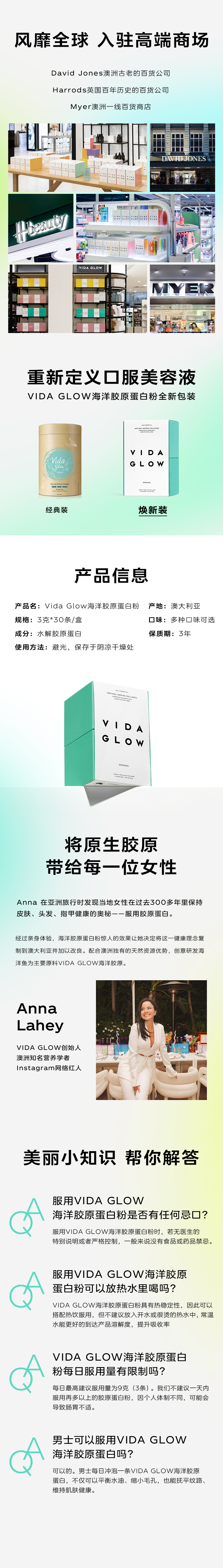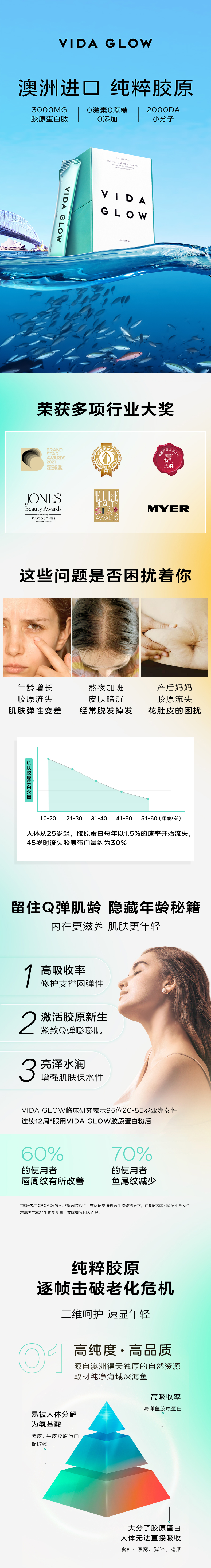 Vida Glow 桃子味天然海洋胶原蛋白粉 3g*30条 (新包装)
