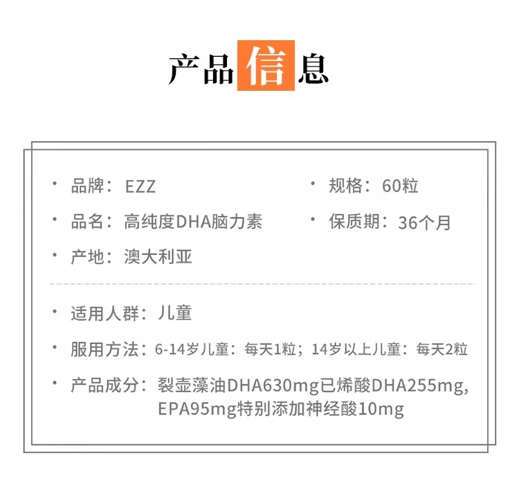 > EZZ 高纯度DHA脑力素胶囊 60粒