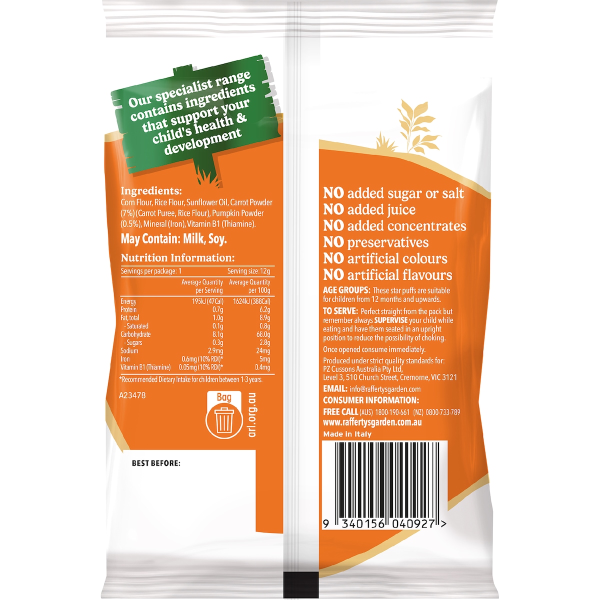 Rafferty's Garden 胡萝卜&南瓜星星泡芙 12月+ 12g