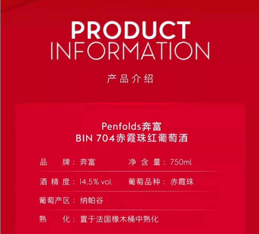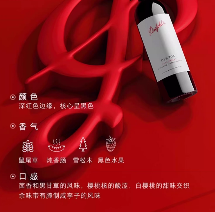 > Penfolds奔富 BIN704 赤霞珠干红葡萄酒 750ml