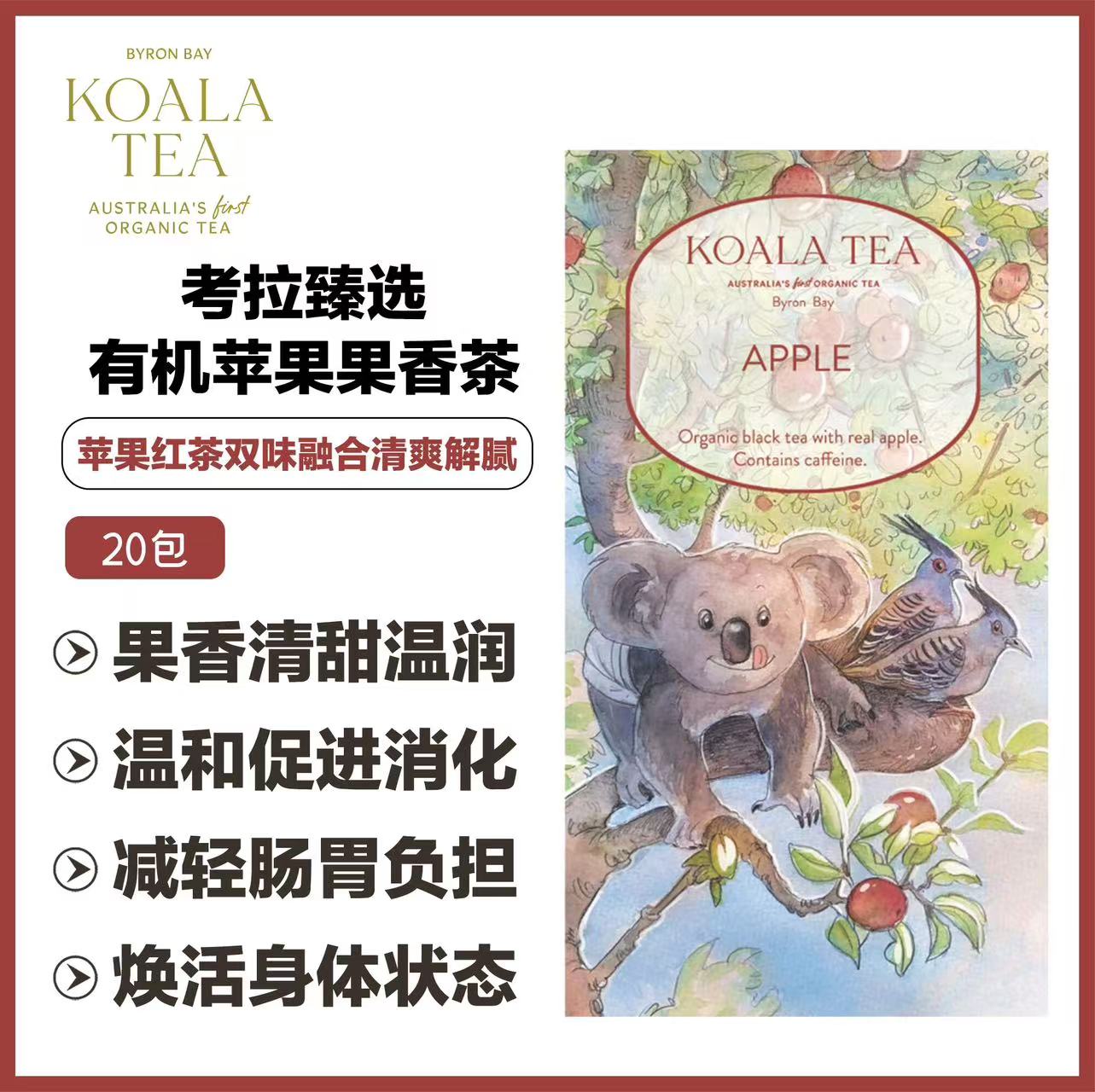 > KOALA TEA 考拉臻选 有机苹果果香茶(茶包)20包