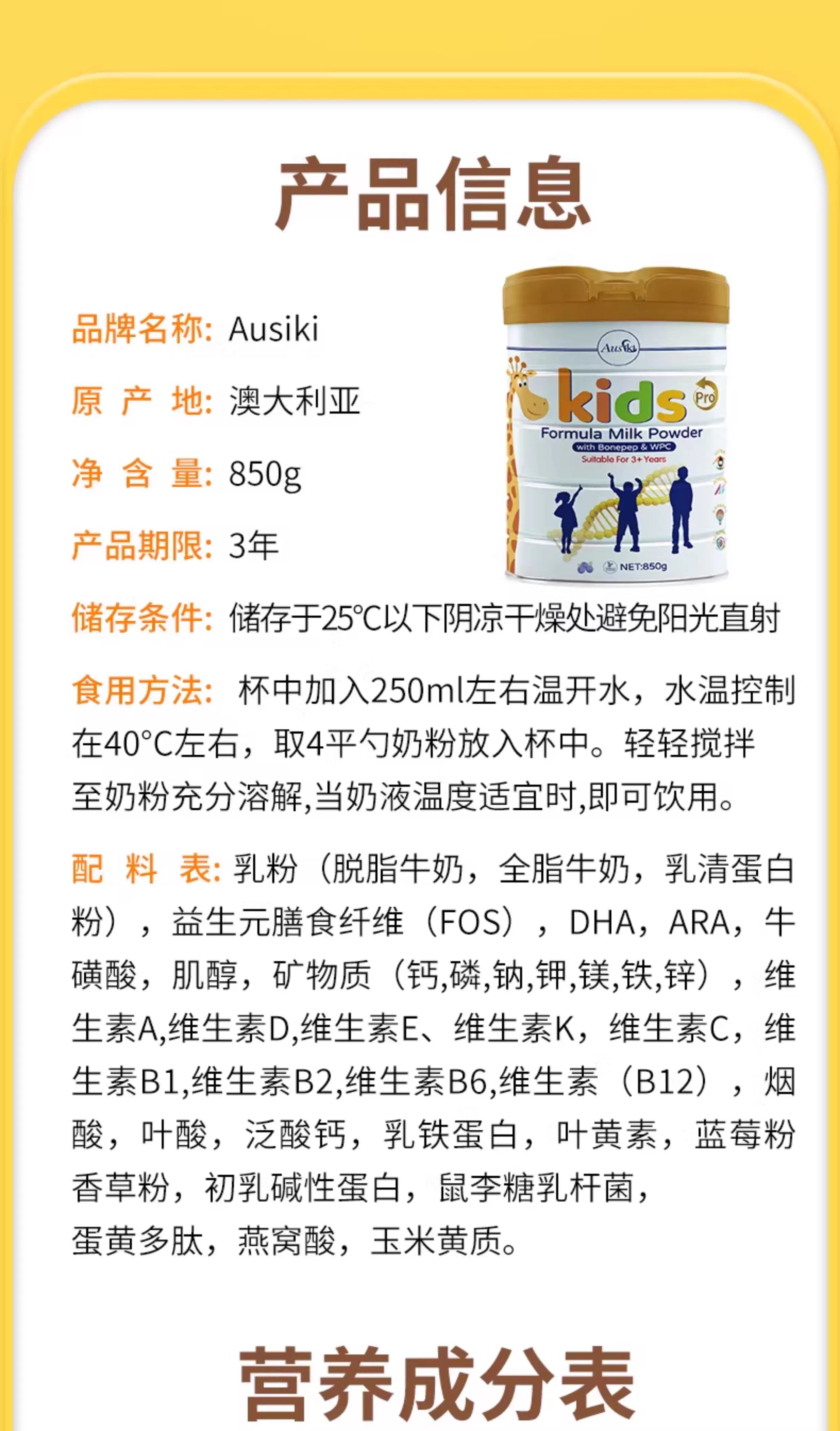 Ausiki澳爱优 儿童成长奶粉【PRO版】850g