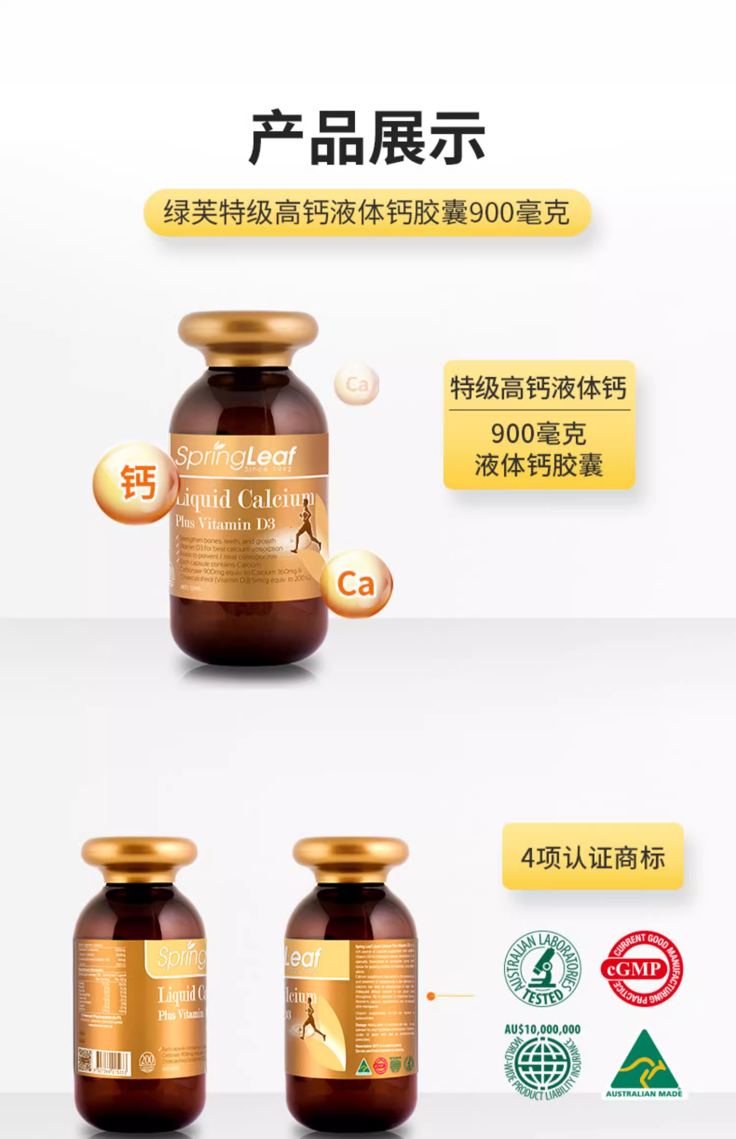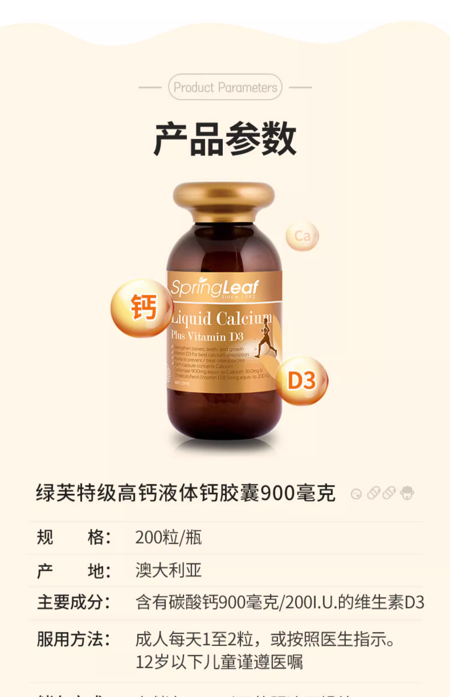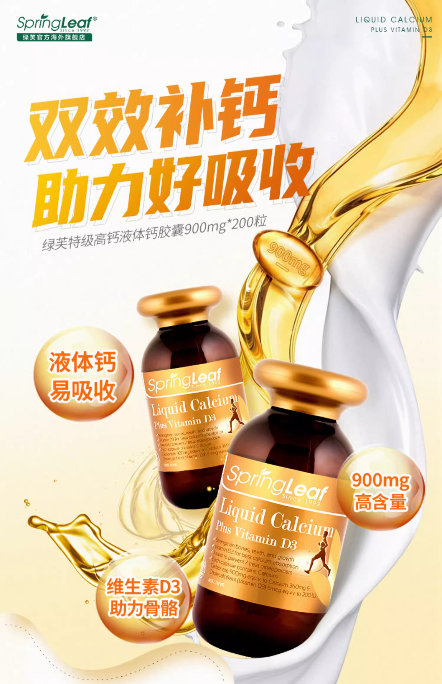 > Spring Leaf 绿芙 高含量液体钙900mg 200粒