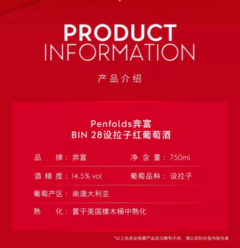 > Penfolds奔富 BIN28干红葡萄酒 750ml