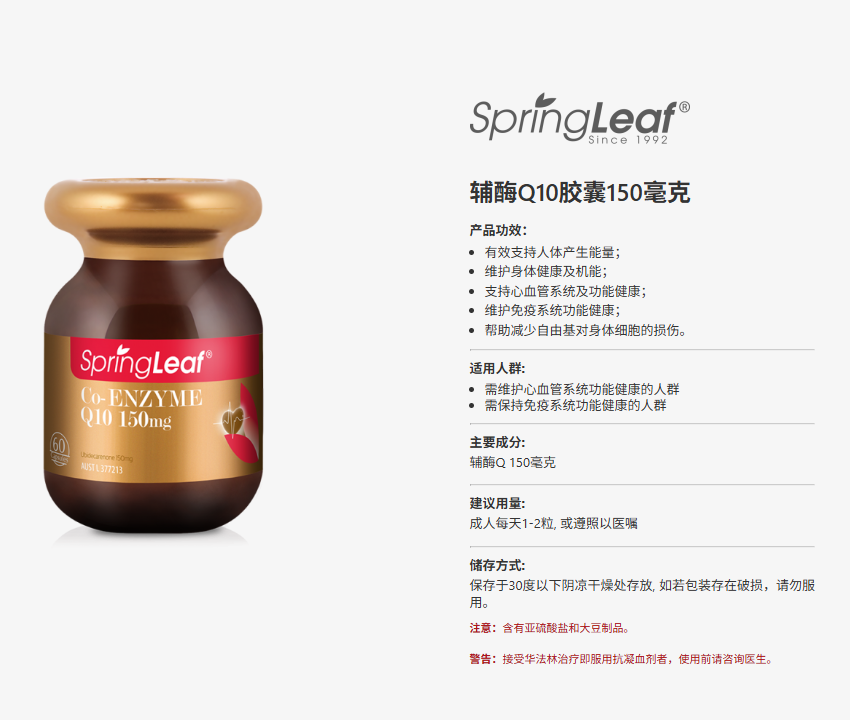 > Spring Leaf 绿芙 辅酶Q10胶囊150mg 60粒