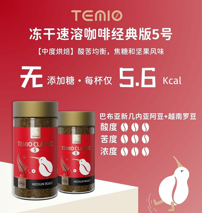> Temio 冻干速溶咖啡经典版5号 中度烘焙 200g