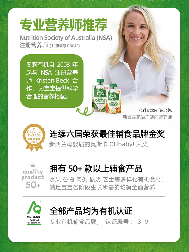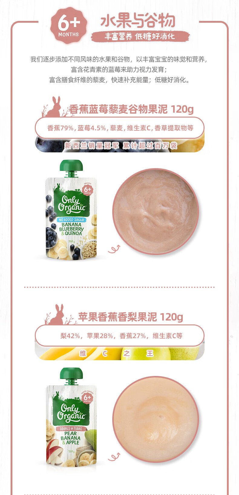 > Only Organic 6个月+婴儿果泥 梨+香蕉+苹果 120g